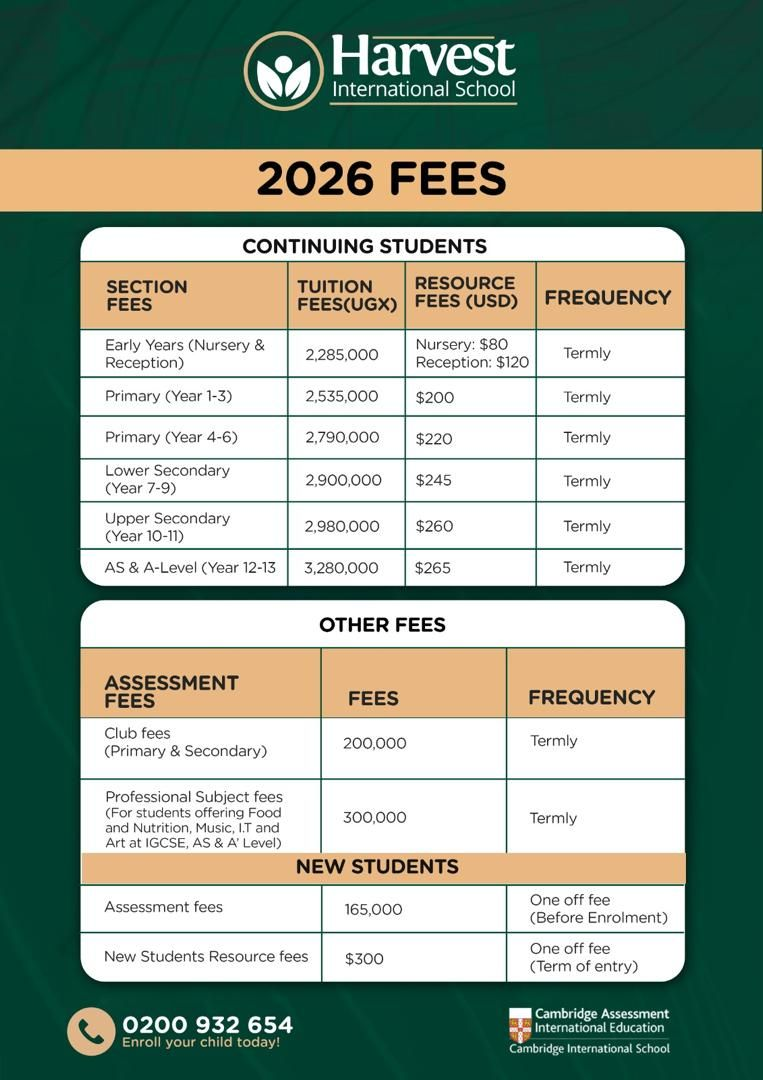The Harvest International School's typical school day ends at 4pm for Early Years and Primary School, then at 5pm for the candidate classes.